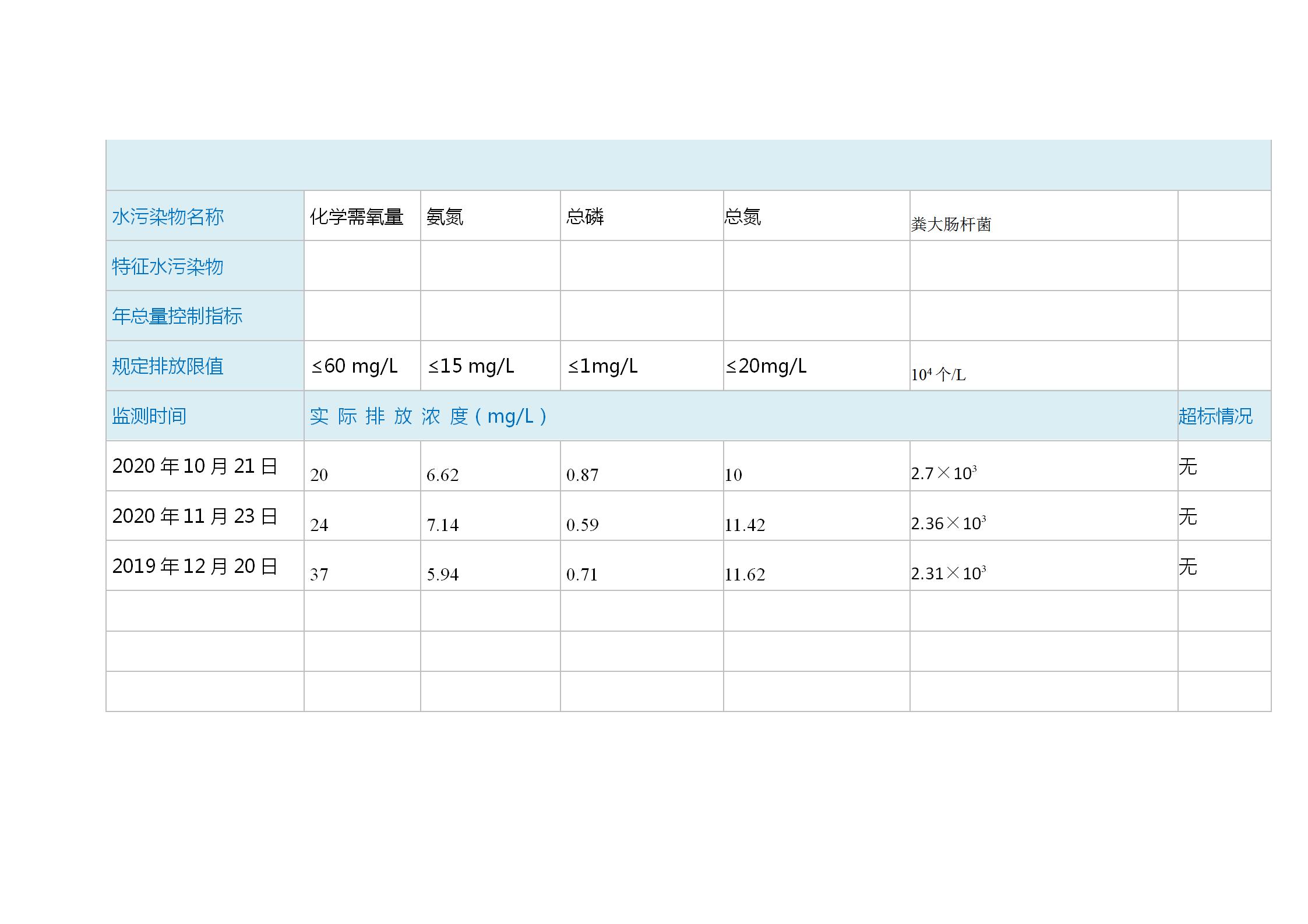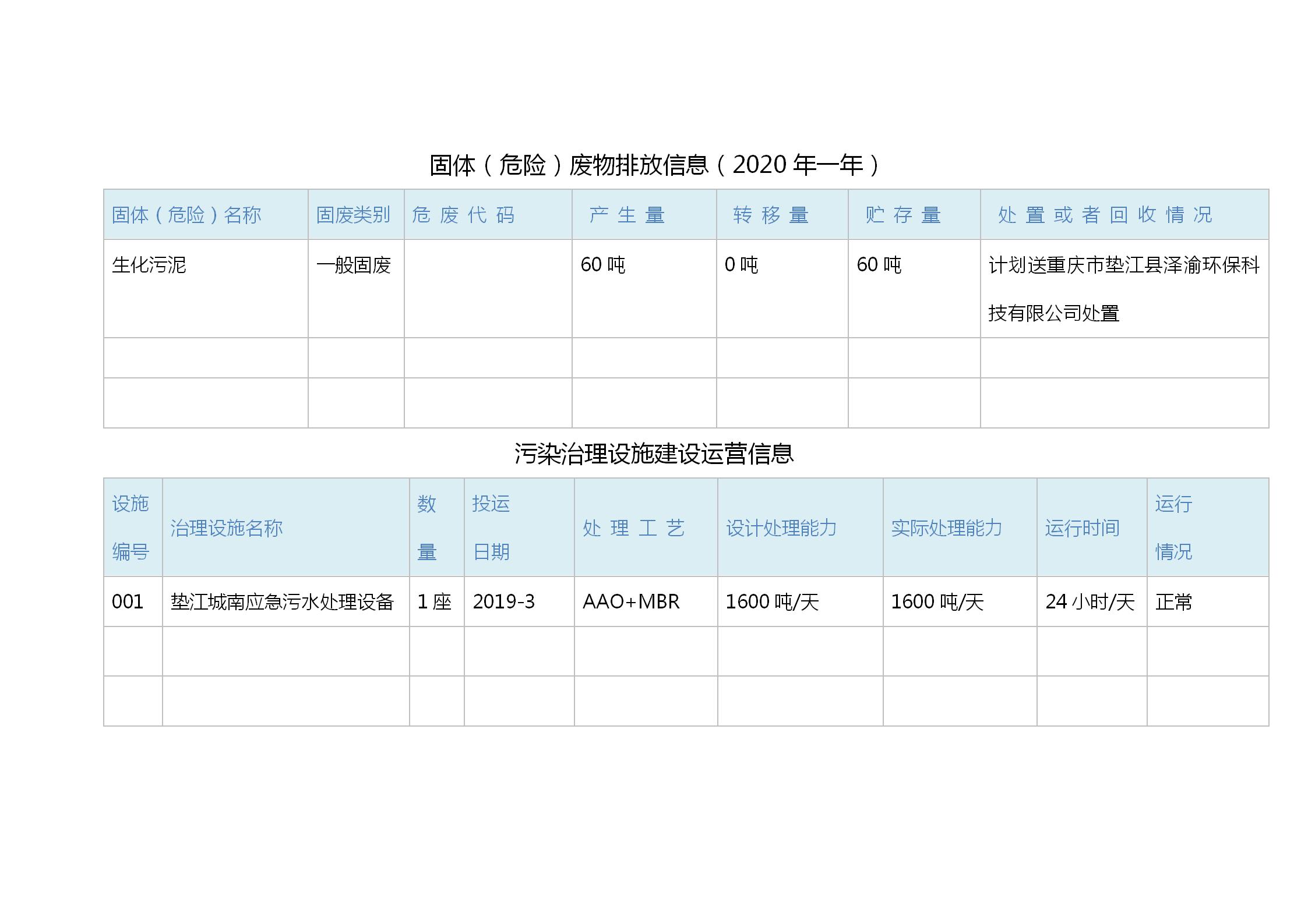 我司運營的墊江縣城南應(yīng)急污水處理設(shè)施,處理規(guī)模:1600方/天,主體工藝采用:MBR一體化設(shè)備,出水排放標準:《城鎮(zhèn)污水處理廠污染物排放標準》GB18918-2002)一級B標,具體內(nèi)容詳見環(huán)境信息公開表。