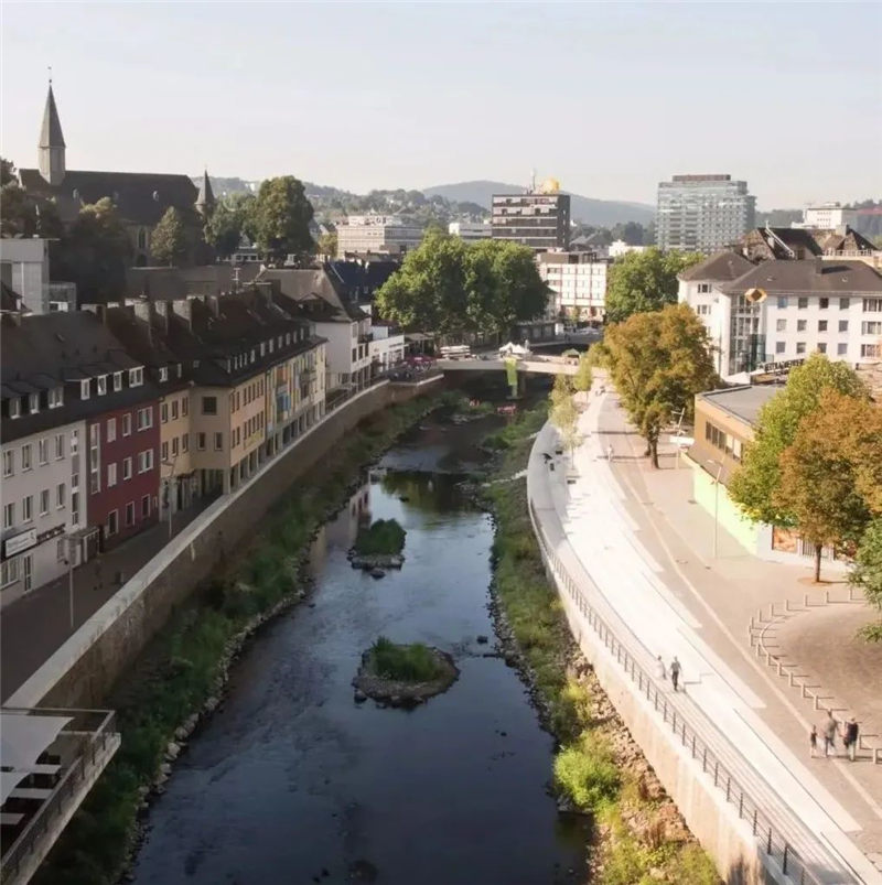 在拆除“ Siegplatte”(位于Sieg河堤防上的停車(chē)場(chǎng))之后,2012年至2016年期間沿著河段的大規(guī)模臺(tái)階建設(shè)使得新的直接通往河段的河流成為可能。錫根市中心。希格(Sieg)自然化,擁有草皮的島嶼和岸堤,可以使水生動(dòng)物和兩棲動(dòng)物通過(guò)生物通道。180米長(zhǎng)的樓梯雕塑在河邊,成為城市與河流互動(dòng)的表演舞臺(tái)。鑒于西格(Sieg)的自然風(fēng)光,西格特雷彭(Siegtreppen)變成了聚會(huì)場(chǎng)所。流域變成了上下城鎮(zhèn)之間的墊腳石。該項(xiàng)目獲得了無(wú)數(shù)獎(jiǎng)項(xiàng),并獲得了2017年德國(guó)景觀(guān)建筑獎(jiǎng)的“綠色基礎(chǔ)設(shè)施作為戰(zhàn)略”類(lèi)別。
