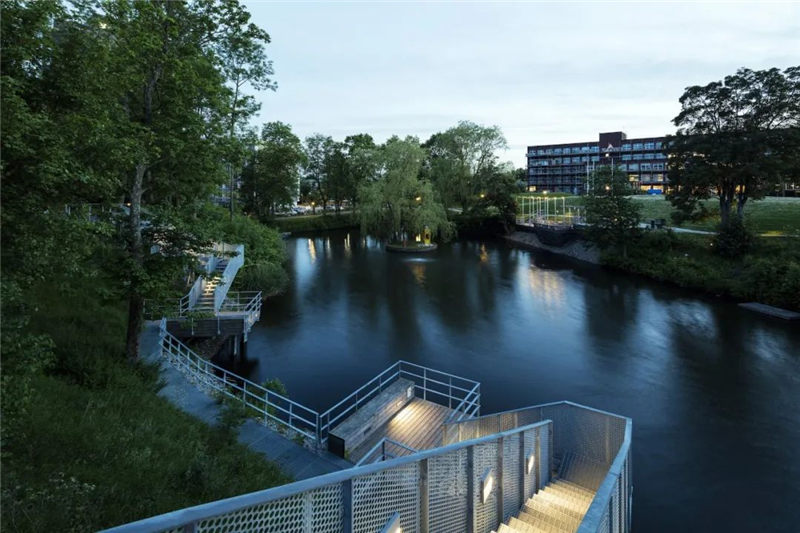 而改造之后的公園則滿(mǎn)布青翠、生機(jī)勃勃,使得康涅狄格州的生態(tài)及社會(huì)結(jié)構(gòu)得到了優(yōu)化。在與工程師及生物學(xué)家的通力合作下,團(tuán)隊(duì)所設(shè)計(jì)出的景觀(guān)不但修復(fù)了水陸生環(huán)境,更通過(guò)修復(fù)渠道般的河流減少了洪水泛濫,同時(shí)也引入了數(shù)百種新型本土植物。
