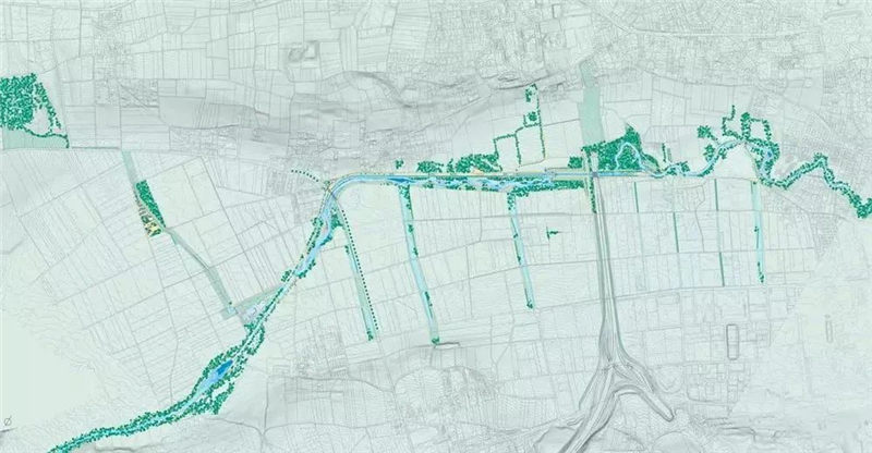 在整個(gè)流域、原有的山丘形態(tài)和人為改造的痕跡中,這條狹長(zhǎng)的河畔花園將這些場(chǎng)面、視野、沖突等構(gòu)成一場(chǎng)真實(shí)版愛(ài)森斯坦式“蒙太奇”。舊運(yùn)河留存的痕跡使得新的設(shè)計(jì)情景之中飽含復(fù)雜的時(shí)間性,有著十分遙遠(yuǎn)又非常現(xiàn)代的奇異感。空間與時(shí)間的沖突之間充滿(mǎn)著記憶與希望。