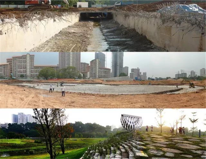 2006年,新加坡國(guó)家水務(wù)局PUB發(fā)起的活躍、美麗和凈水(ABC)計(jì)劃——將不再具有排水和供水功能的國(guó)家水體改造成活躍的新空間,用于社區(qū)融合和休閑娛樂(lè)。作為急需的公園改造升級(jí)以及改善運(yùn)河能力計(jì)劃的一部分,這個(gè)新設(shè)計(jì)將看似相反的需求結(jié)合起來(lái)。打破混凝土渠道和建造自然水道的方案也是第一次在新加坡設(shè)計(jì)。
