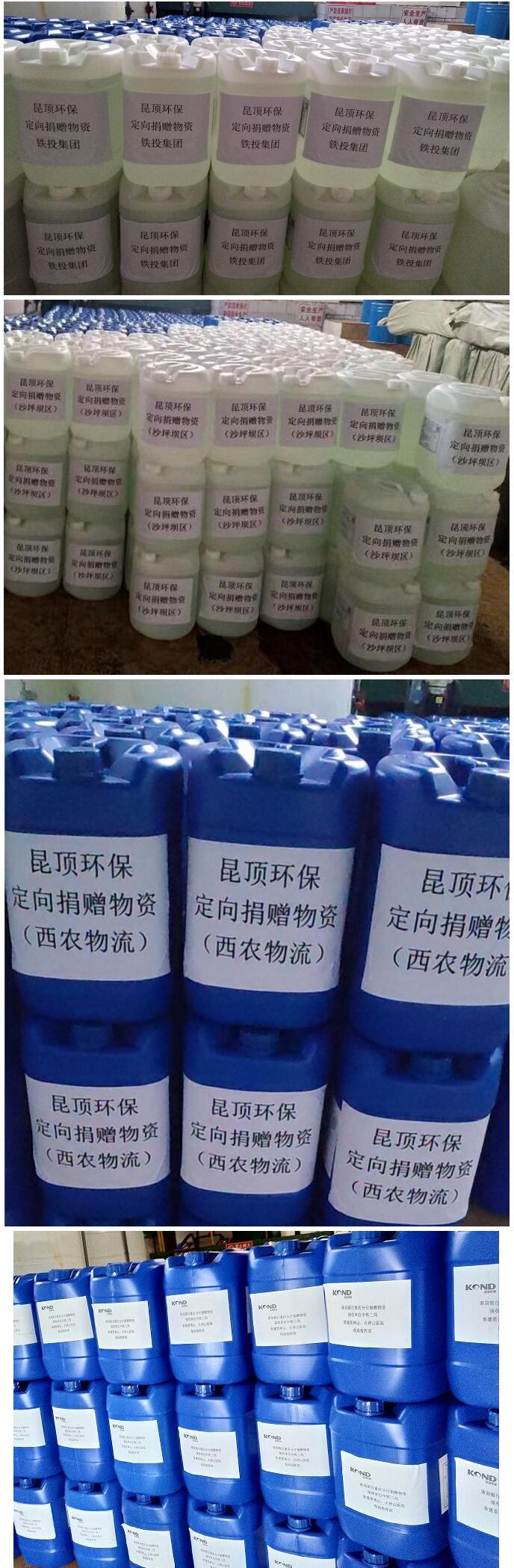 據(jù)了解,自肺炎疫情發(fā)生以來,多地區(qū)疫情防控物品出現(xiàn)緊缺情況,為緩解當前困難,昆頂環(huán)保向各區(qū)人民政府、各區(qū)生態(tài)環(huán)境局、各企業(yè)捐贈了消毒防護物資。并聯(lián)合浙商銀行重慶分行向參建火神山雷神山醫(yī)院的中鐵二局現(xiàn)場指揮部捐贈的消毒防護物資,今日已運往武漢,用于保障現(xiàn)場建設工作人員的疾病防控安全。截至2月15日,昆頂環(huán)保已累計捐贈300桶濃縮高純二氧化氯消毒液,可稀釋成750噸消毒液對環(huán)境噴灑消毒。